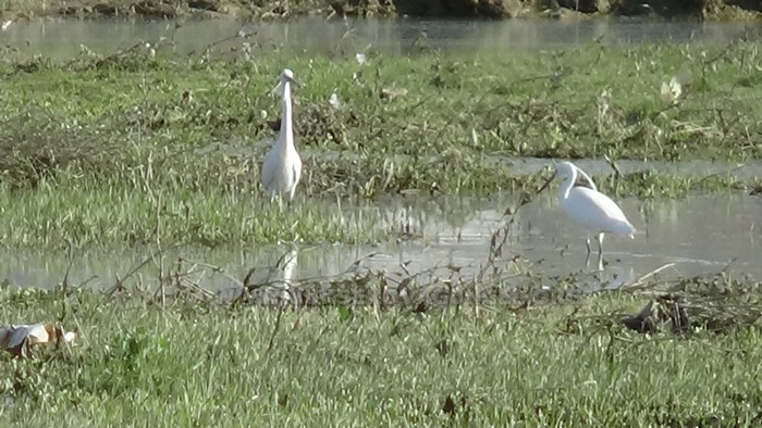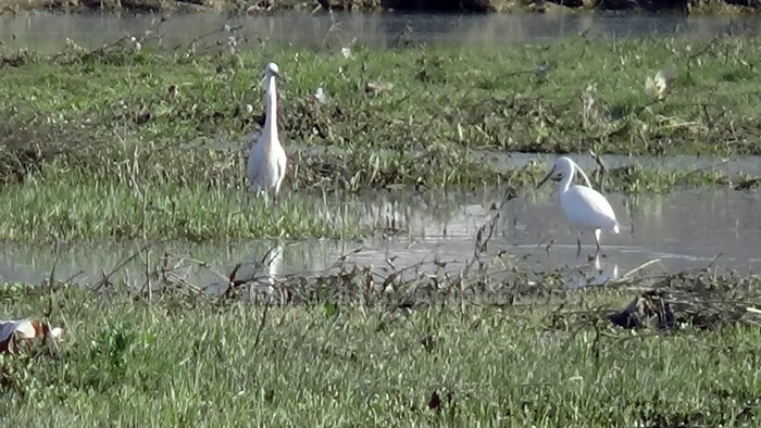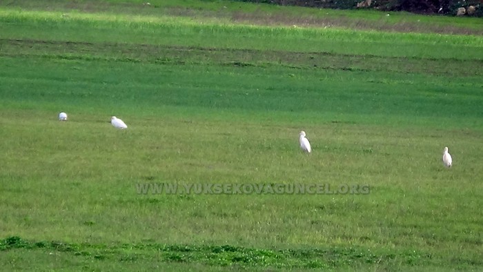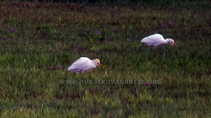 Büyük ak balıkçıl kuşlar ovada yeşilliğin içinde gezerken, küçük ak balıkçıl kuşlar ise Nehil Sazlığı'nda dinlenirken görüntülendi.