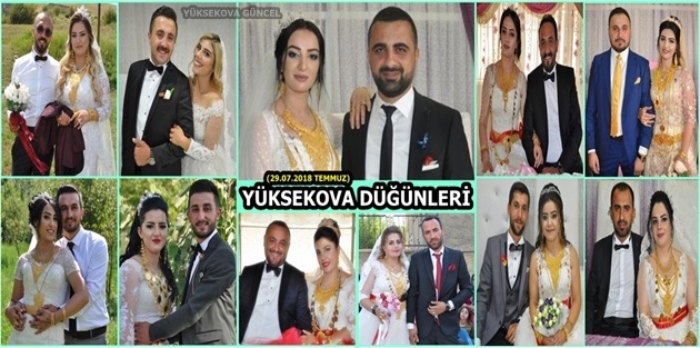 Yüksekova Düğünleri (29.07.2018) Tarihinde Dünya Evine Giren Çiftlerimizi Yüksekova Güncel Haber sitesi Okuyucuları İçin Sayfamıza Taşıdık.Dünya evine giren çiftlerimize mutluluklar dileriz.