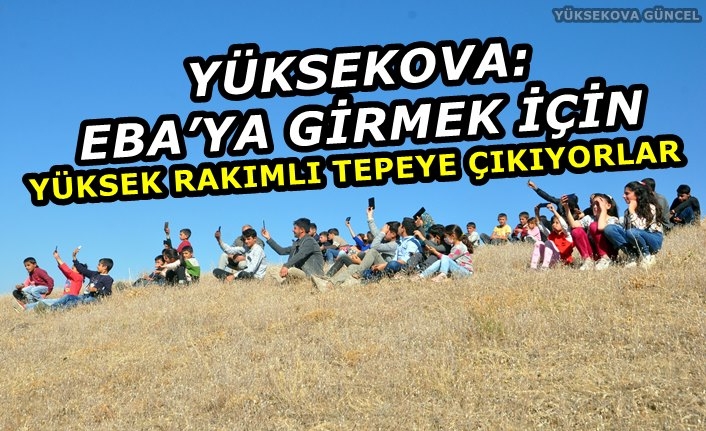 Yüksekova ilçesindeki bir grup öğrenci, telefonların çektiği yüksek rakımlı tepeye çıkarak Eğitim Bilişim Ağına (EBA) bağlanarak ders işliyor.