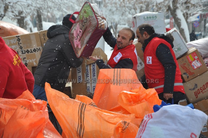 Soğuk havaya rağmen stantta durun Kızılay şubesi üyeleri yaklaşık 3 günün sonunda yardım kampanyası kapsamından topladıkları yardım malzemelerini bu gün ‘Yüksekova Halkından Elazığ'ımıza' pankartıyla Elazığ'daki depremzedelere gönderdi.