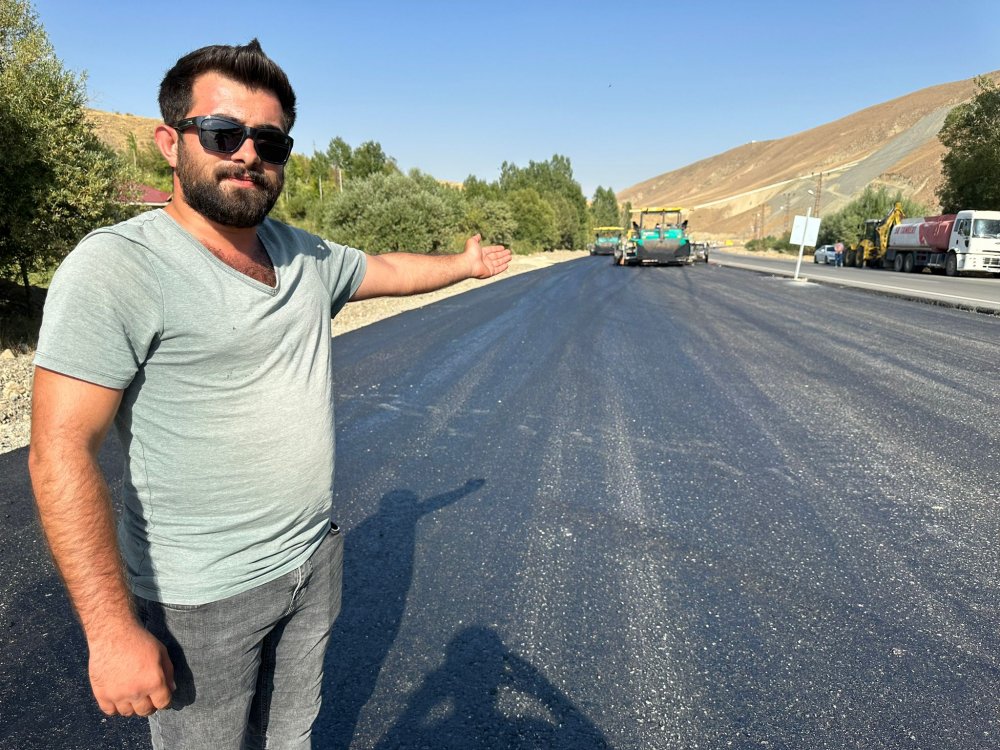 Yol çalışmalarında harita teknikeri olarak çalışan Yunus Emre Bizan, "Bizim Türkiye İran arasında bulunan uluslararası İpekyolunda bir yol çalışmamız var. Bitümlü Sıcak Karışım çalışması yol çalışması yürütüyoruz. Artık çalışmalarımızın sonuna gelmiş durumdayız. Burası önemli bir yol iki ülkeyi birbirine bağlayan yoldur. Burası yoğun bir geçiş yolu olduğu için yoğun bir çalışma yürütüyoruz. Şuna zaten tam sınırdayız yaptığımız bu yol tüm bölgeye hayırlı olsun" dedi.