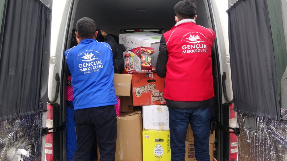Hakkari'nin Yüksekova Gençlik Merkezinin personelleri, hem topladıkları oyuncakları götürmek hem de bölgede çalışmalara destek olmak üzere Hatay'a gitti.