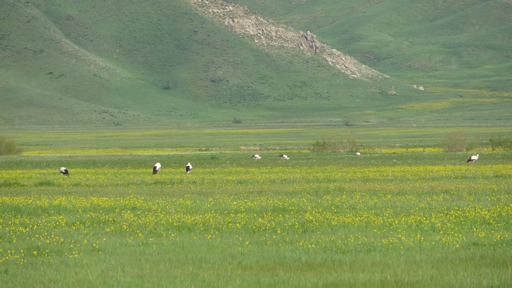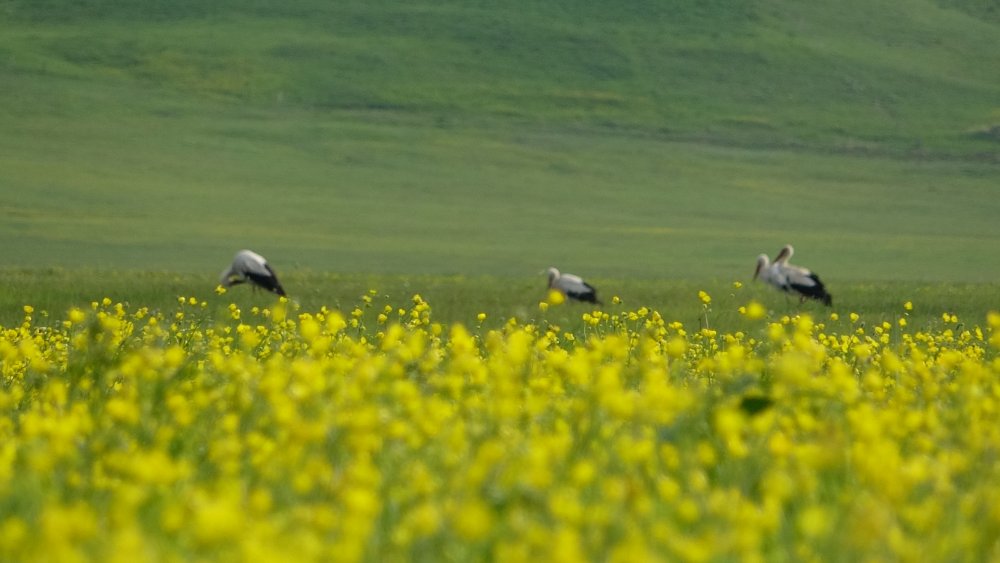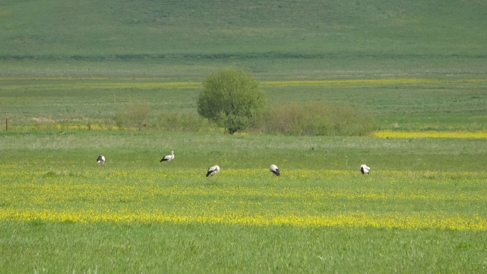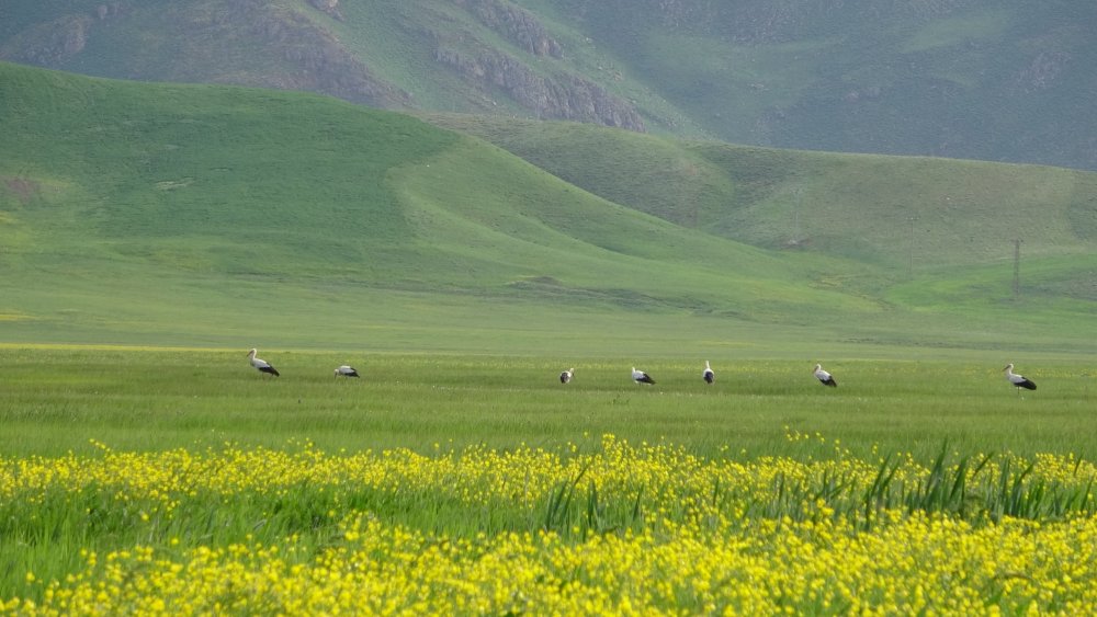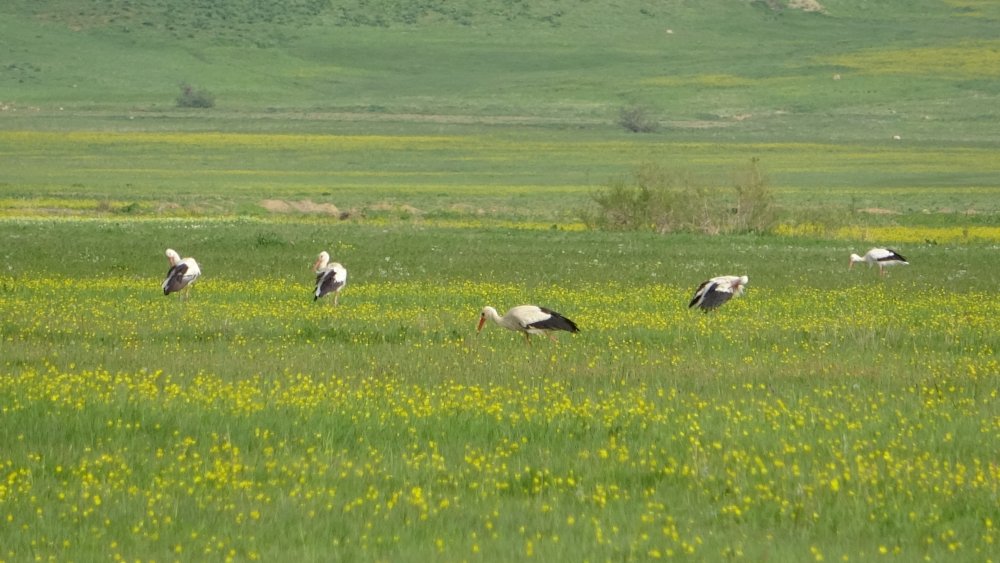 Nehil Sazlığı'na gelen bir vatandaşın ise sarı çiçekler içinde sıralı şekilde duran leyleklerin karşısında durarak Kürtçe şarkı söylemesi renkli görüntüler oluşturdu.