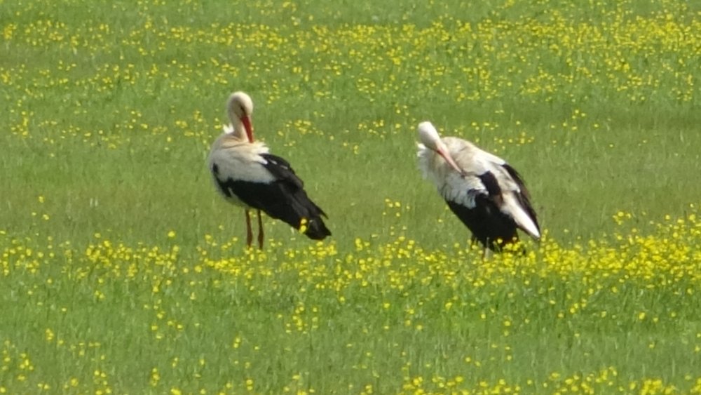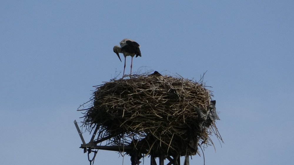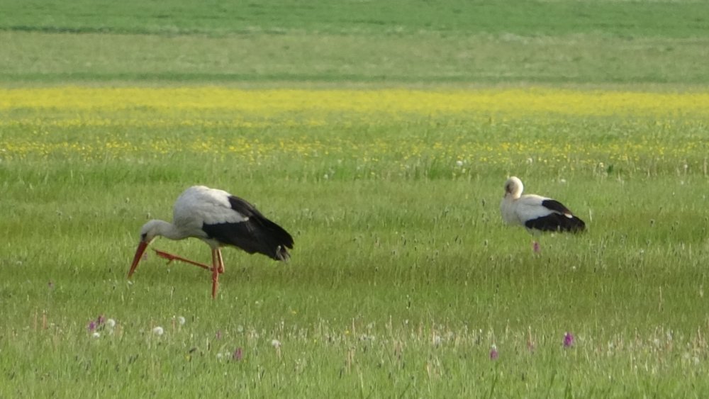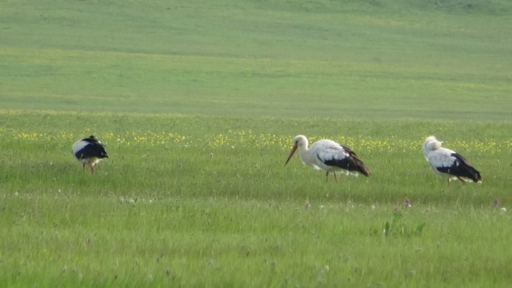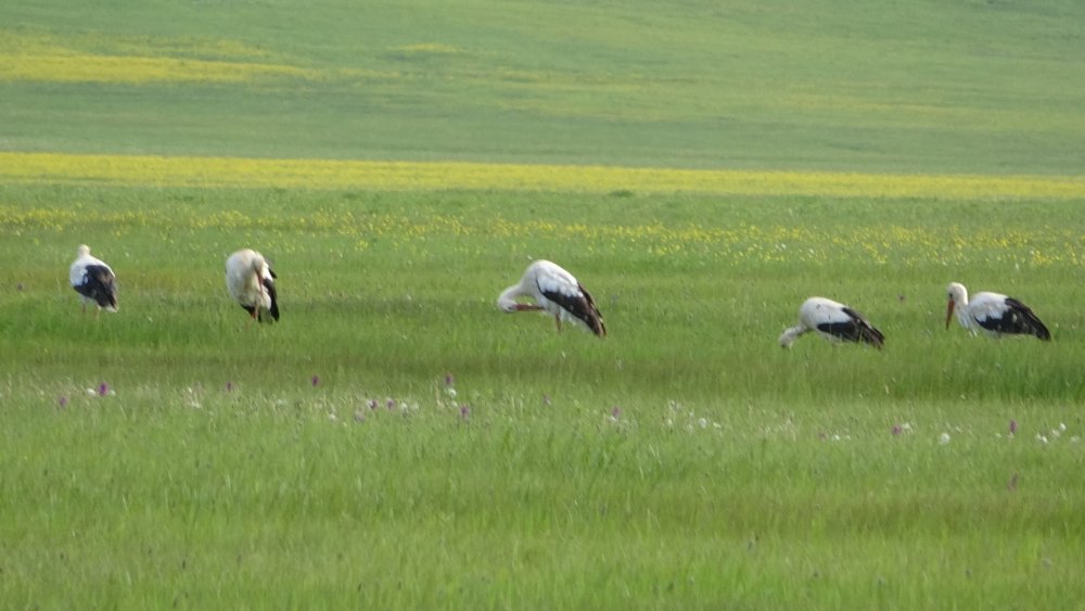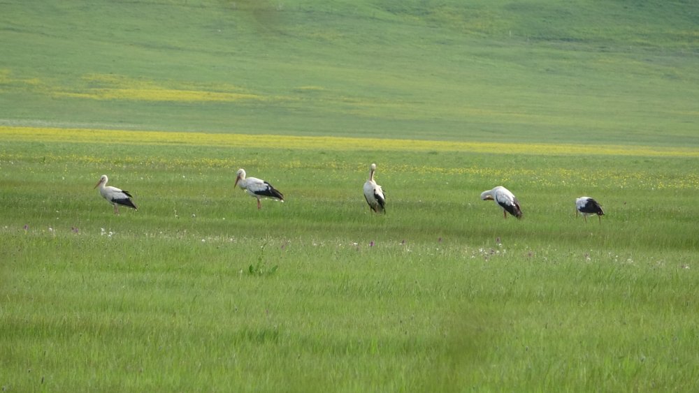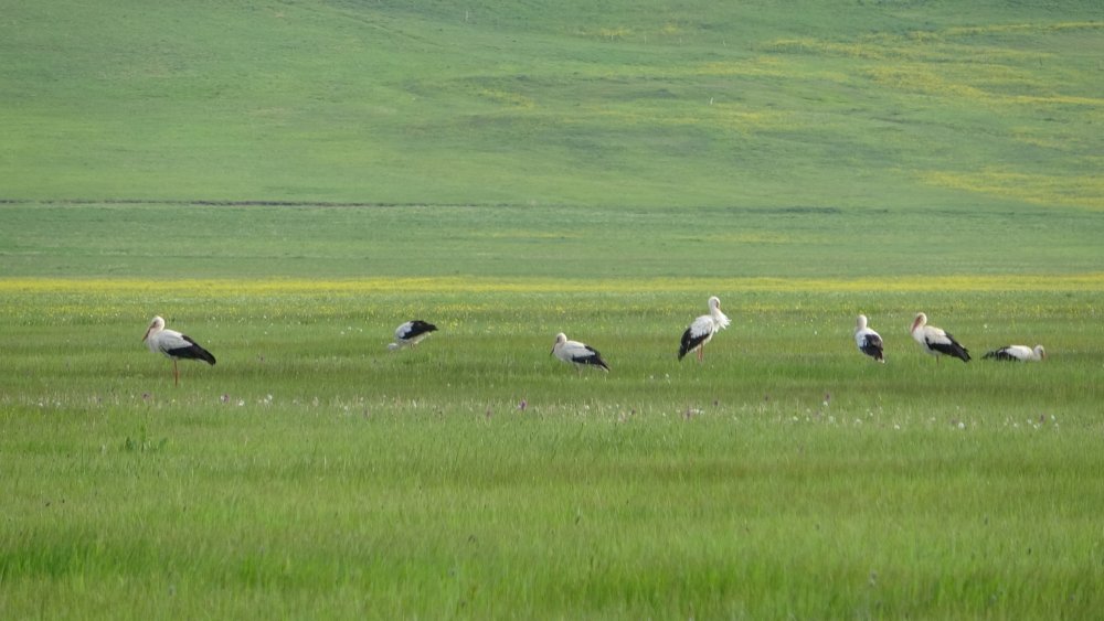 Göç yoluyla gelen yüzlerce leylek, koruma altında olan Nehil Sazlığı'nda konaklıyor.