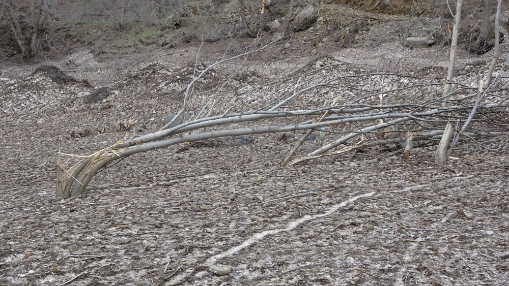 Karların erimesi sonucu köye giden vatandaşlar, çığdan dolayı aralarında meyve ağacı da bulunan 200 ağacın zarar gördüğünü tespit etti.