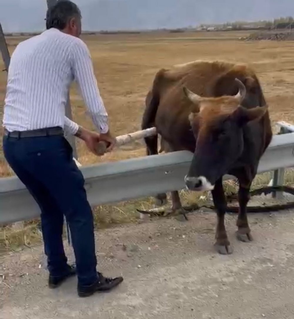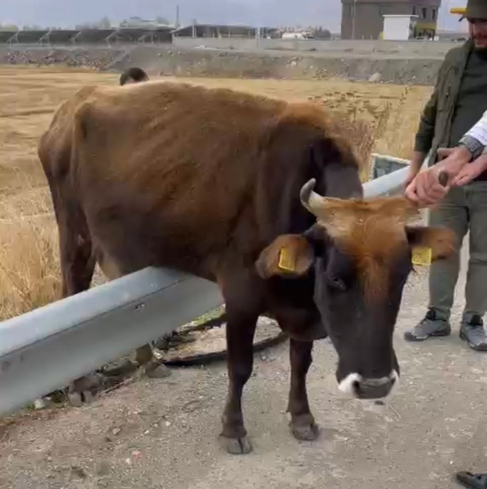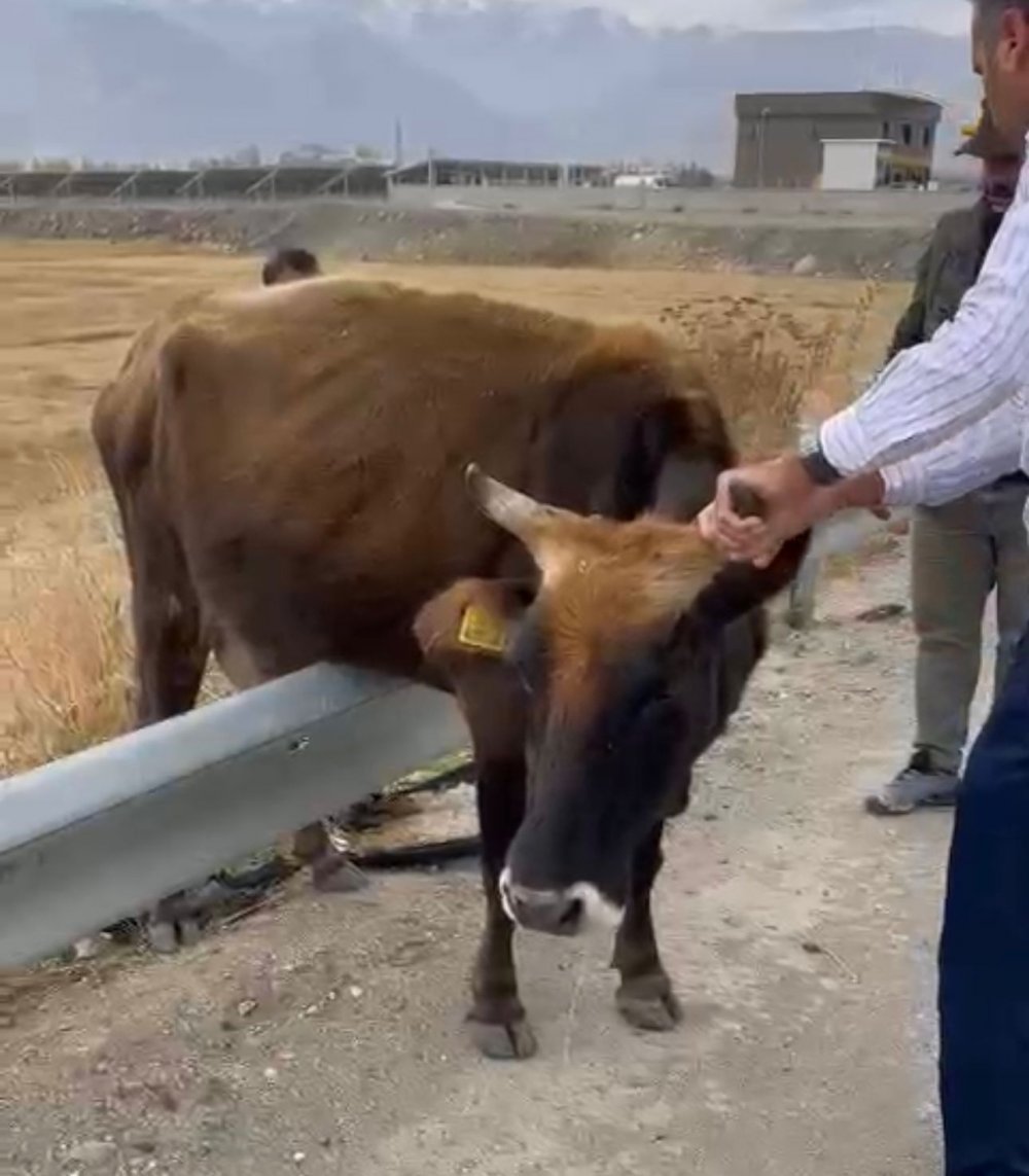 İneği kurtardıklarını belirten Adem Kahraman, “Bariyer üzerinden atlamak isterken mahsur kalmış. Bizde görür görmez hemen yardıma koştuk. En sonunda ineği kurtardık” dedi.