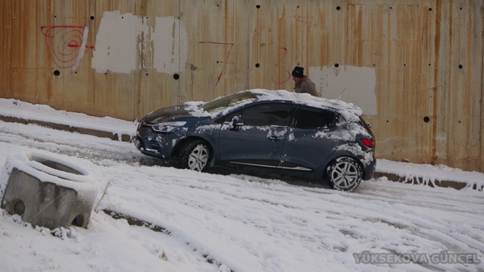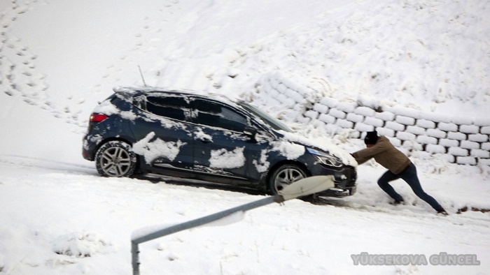 Yüksekova ilçesinde etkili olan yoğun kar yağışından sonra araçlar kara gömülürken, bazı sürücüler ise yollarda mahsur kaldı.