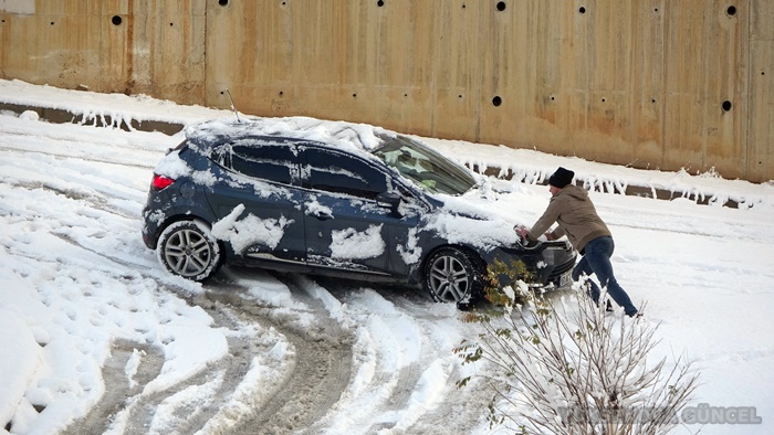 Sabah iş yerlerini açan esnaf, kapılarının önünde biriken karları küreklerle temizlerken, kara hazırlıksız yakalanan bazı sürücüler ise yollarda mahsur kalmaları kameralara yansıdı.