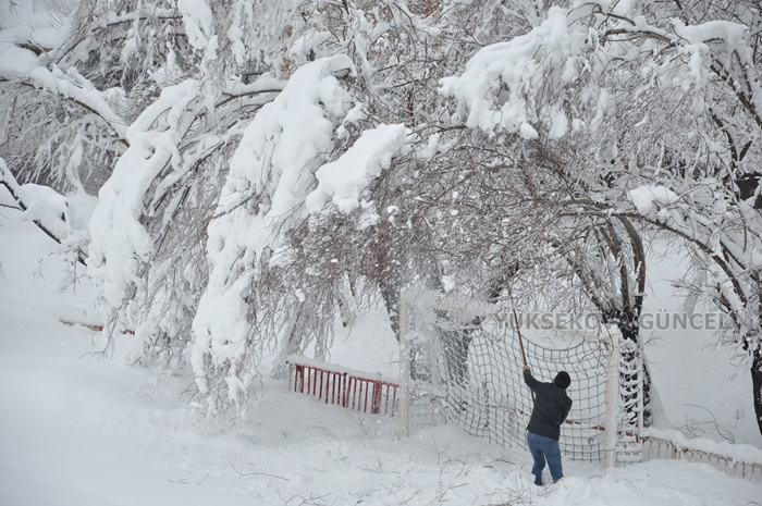 Yüksekova ilçesinde etkili olan kar yağışı nedeniyle tek katlı evler ve araçlar adeta kaybolurken, yüksek kesimde ise kar kalınlığı 3 metreyi geçti.