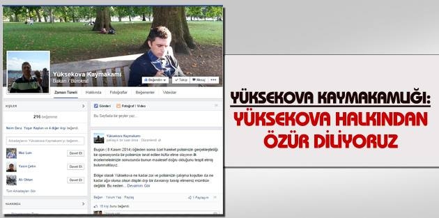 Bölge olarak Yüksekova ne kadar zor ve polisimizin çalışma koşulları da ne kadar ağır olursa olsun displin dışı bir davranışı tasvip etmemiz mümkün değildir. Bu nedenle biz Yüksekova Kaymakamlığı olarak halkımızdan özür diliyoruz.