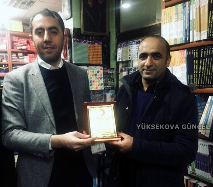 Kızılay öncülüğünde başlatılan yardımlara destek veren esnafa Kızılay Yüksekova Şube Başkanlığı teşekkür plaketi verdi.