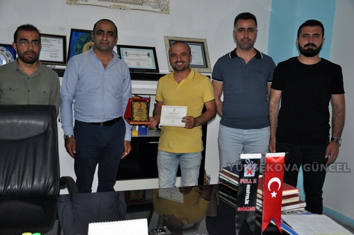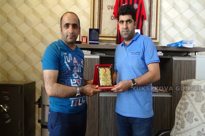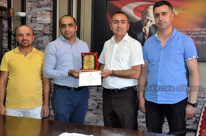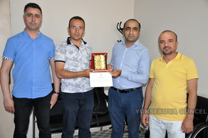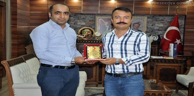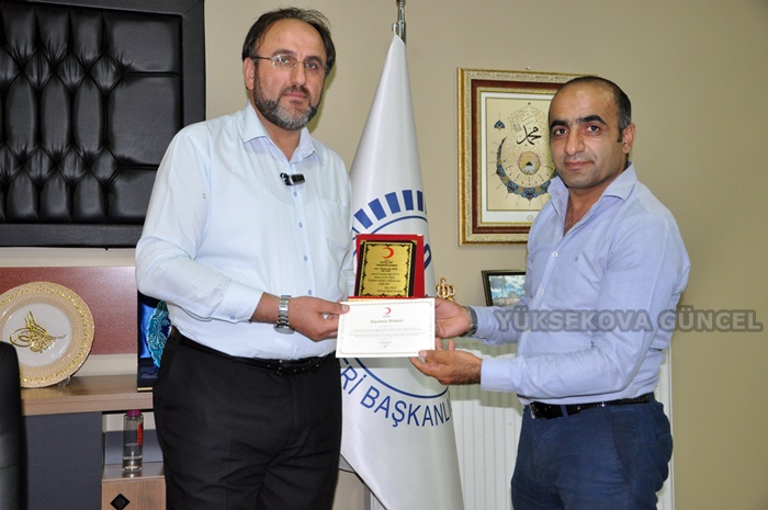 Yüksekova Kızılay Şubesi tarafından Ramazan ayında her gün 500 kişiye yemek verilmesinde desteklerini esirgemeyen Yüksekova Kaymakamı Ramazan Kendüzler ile bazı kurum müdürleri ile esnaflara teşekkür plaketi verildi.
