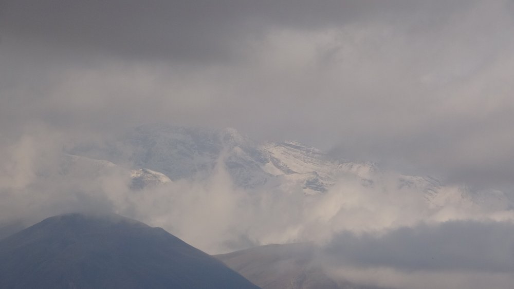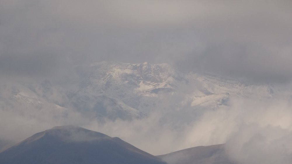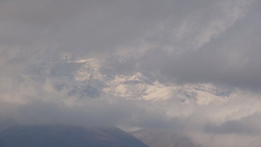 Kar yağışı ile birlikte Cilo Dağları’nın yüksek kesimleri beyaza bürünürken, üzerinde geçen bulutlarla beraber birleşmesi kartpostallık görüntüler oluşturdu.
