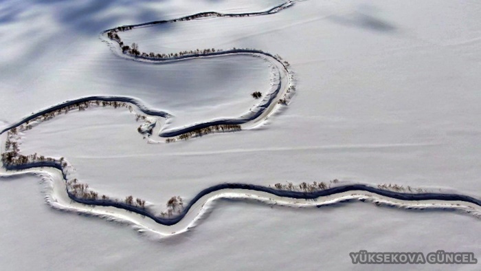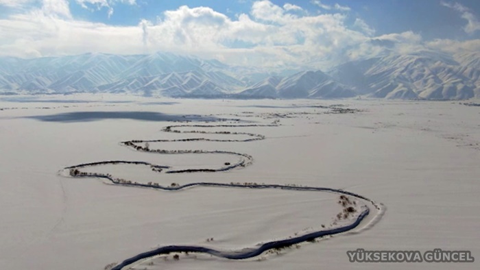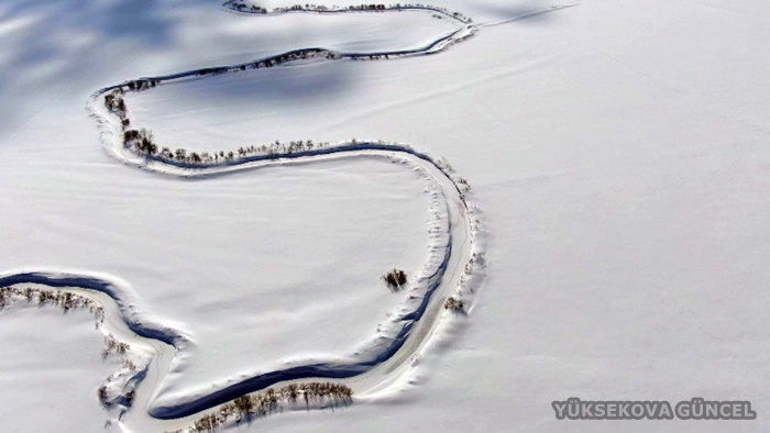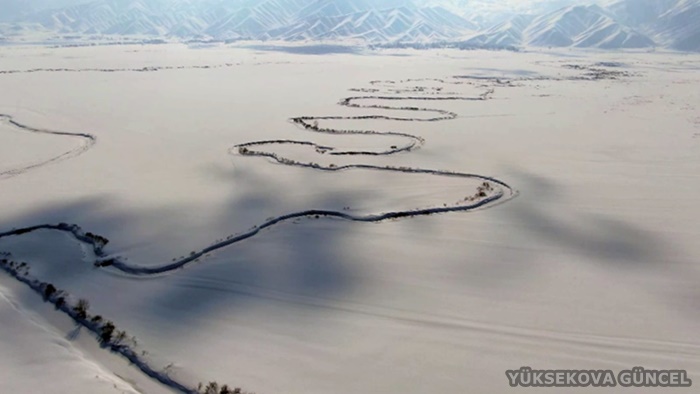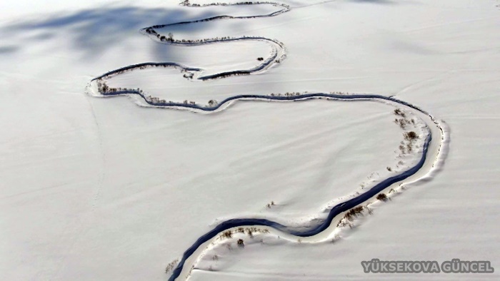 Yüksekova ilçesindeki mendereslerin kar altındaki manzarası adeta mest etti.