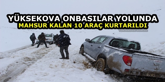 İlçede dün etkili olan yağmur bu gün sabah saatlerinde yerini kar yağışına bıraktı. Kar yağışı ile beraber çok sayıda araç yolda mahsur kaldı. İlçeye yaklaşık 27 kilometre uzaklıkta bulunan Onbaşılar yolunda mahsur kalan araç sürücülerinin İl Özel İdaresine bağlı Yüksekova Şantiye Şefliğine haber vermesi üzerine karla mücadele ekipleri hemen harekete geçti.