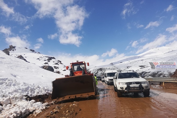 Yüksekova - Van karayolunda meydana gelen heyelan, sürücülere zor anlar yaşattı.