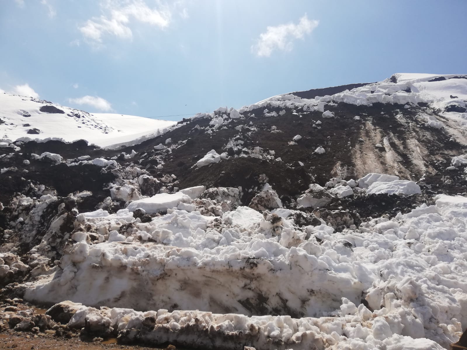 Karayolları ekiplerince yapılan çalışmalar sonucunda yoldaki toprak yığını kaldırıldı.