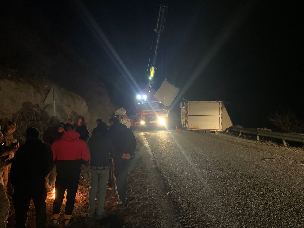 Olayın yaşandığı yere gelen Yılmazlar vinç ve çekicinin yardımıyla tır bulunduğu yerden kaldırıldı.