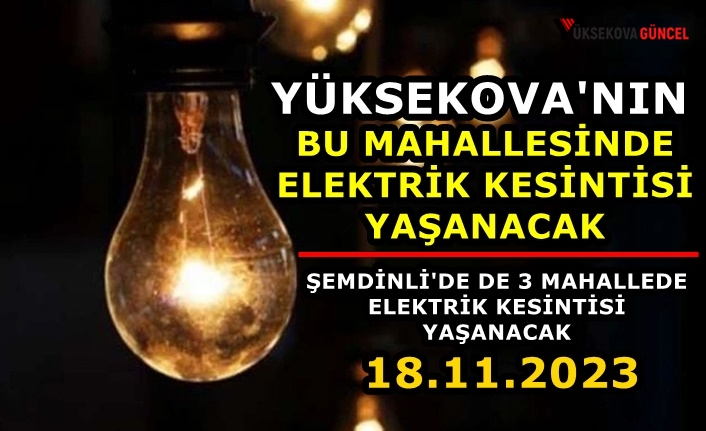 VEDAŞ'TAN YAPILAN AÇIKLAMADA, "18.11. 2023 tarihinde 09:30 ile 17:00 saatleri arasında TEİAŞ bakım çalışması nedeni Yüksekova ilçesinin Yeni Mahallesin çalışma yapılacak... 18.11.2023 tarihinde 10:00-13:00 gibi saatlere kadar Şemdinli ilçesinin Yeni Mahalle, Aşağı Yayla Mahalle ve Yayla Mahallesinde hat bakım çalışması ve planlı enerji kesintisi olacaktır" denildi.