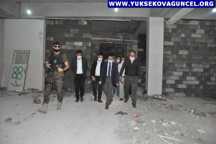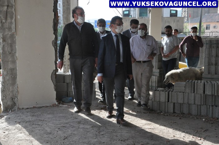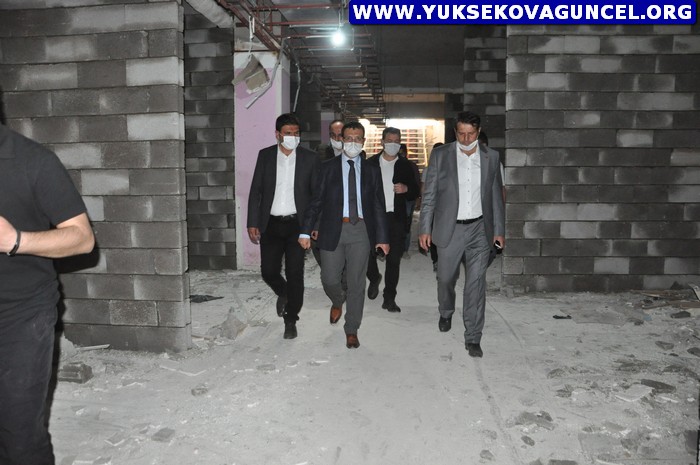 Cengiz Topel Caddesi üzerinde bulunan İhsaniye Camisinin altında 47 dükkanın inşasını yerinde inceleyen Kaymakam Doğramacı, yapılan çalışmalar hakkında Yüksekova Esnaf ve Sanatkarla Odası Başkanı Vedat Çoğaç'tan bilgi aldı.