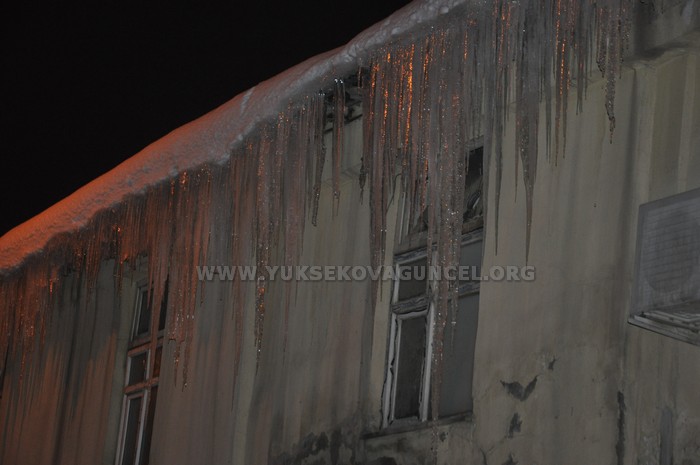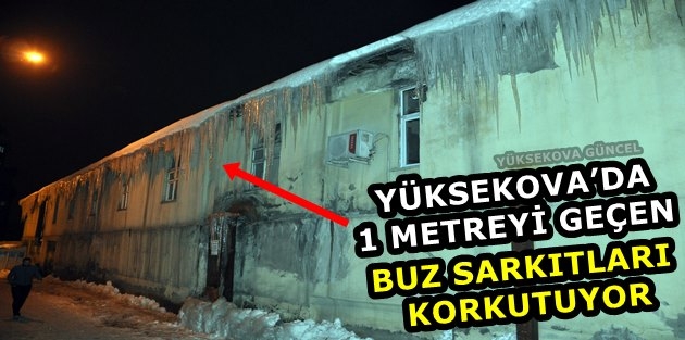 Yüksekova İlçesi'nde çatılarda oluşan buz sarkıtları tehlike saçarken vatandaşların yürüdüğü cadde ve sokaklarda tehlikeler boy gösteriliyor.