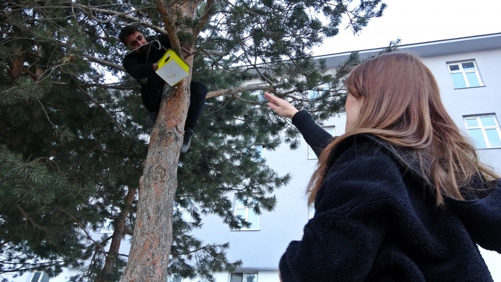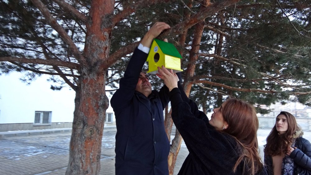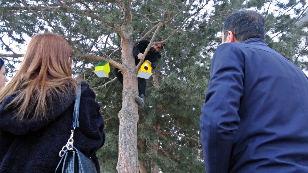 Üretilen kuş evleri, 20 okulun bahçesindeki ağaçlara tek tek yerleştirildi.