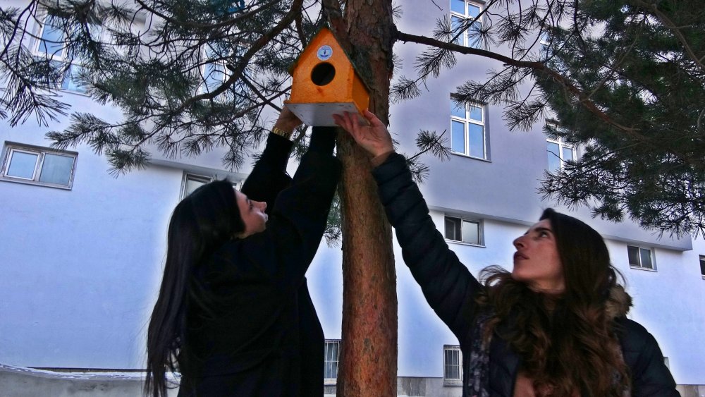 Yüksekova Belediyesi İtfaiye Müdürlüğü ekiplerinin de desteğiyle yuvaları ağaçlara yerleştirdiklerini ifade eden Yüksekova Halk Eğitim Merkezi Müdürü Kenan Canan, “Kış mevsiminde yiyecek sıkıntısı yaşayan ve üşüyen kuşlara yönelik Çocuk Bakım Elemanı Usta Öğreticimiz Müminat Karagöz ve kursiyerleri tarafından bir çalışma yapıldı. ‘Kuşlar Üşümesin Diye!' başlatılan farkındalık etkinliği çerçevesinde 20 kuş evini bugün doğayla buluşturduk. Yaptığımız kuş yuvalarını okul bahçelerindeki ağaçlara astık. Bu alanlarda öğrencilerimizin kuş yuvalarını gördükçe merak duygularını uyandırıp, aynı zamanda biyolojik çeşitlilik konusundaki bilgilerini arttırmaktı amacımız” dedi.