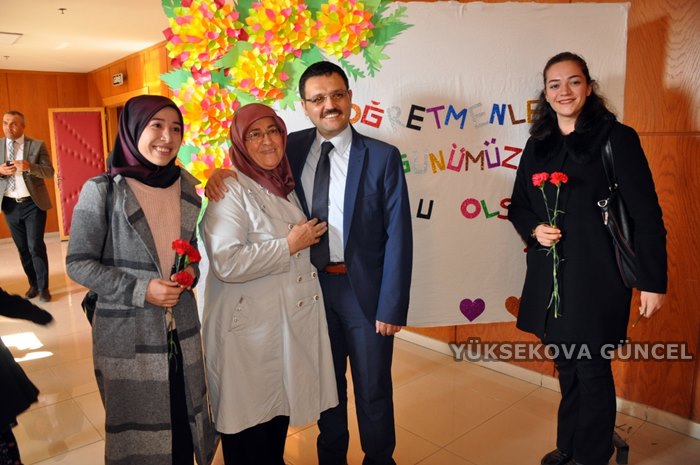 Burada konuşan Yüksekova Kaymakamı ve Belediye Başkan Vekili Osman Doğramacı, günün anlam ve önemini belirten bir konuşma yaptı. Öğretmenlerin gününü kutlayan Doğramacı, "Siz değerli öğretmen arkadaşlarımıza geleceğin müreffeh Türkiye'sini kurma noktasında yoldaşlarımıza, bir şeyler söylememiz gerektiğini düşünerek, beraber yürüdüğümüz bu yolun ne kadar meşakkatli olduğunu ve bu yolun en büyük mimarlarının da sizler olduğunu belirtmek istiyorum. Eğitim camiasını çok önemsiyoruz. Çünkü yeni bir Yüksekova inşa etmenin arifesindeyiz. ve bununda öğretmenlerimizle olacağına inanıyorum. Biz bir inşa faaliyetinin sürekli kumla, çakılla, toprakla, çimentoyla olduğu düşüncesinden hareket ediyoruz. Halbuki biz yeni bir Yüksekova'yı öğretmeniyle, çocuğuyla, genciyle, kadınıyla inşa edeceğimize inanıyorum. Siz öğretmenlerimizin görevi çok zor, çünkü sizler cevherleri mücevherlere dönüştüren ustalarsınız. En değerli varlıklarımızı, dünyanın en değerli cevherini sizlere emanet ediyoruz. Askerlerimizi, mühendislerimizi, doktorlarımızı sizler eğitiyorsunuz. Yani bizi temsil eden kim varsa öğretmenlerimiz eğitiyor. Bizim yetiştireceğimiz çocuklar, geleceğin mutlu, huzurlu ve adil dünyasını inşa edeceklerine inanıyorum. Dünyanın tek vicdan kalesi bu ülkedir. Bu ülkenin çocuklarıdır. Bugünün dünyasına bakarak, geleceğin dünyasını güzelleştirecek adil, huzurlu, herkesin birbiriyle barış içinde yaşadığı dünyayı inşa edecek çocukları yetiştirmek zorunda olduğunuza inanmanız gerektiğine inanıyorum. Bu duygu ve düşüncelerle Öğretmenler Günü'nüzü kutluyorum" dedi.