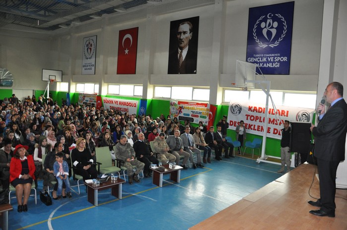 Ardından Kadınları Toplumsal Destekleme Derneği Başkanı Müjgan Erdem ise "Kadının toplumda söz sahibi olduğunu biliyoruz. 'Cennet anaların ayağının altındadır' diyen Peygamber Efendimizin izinden gidenler olarak, kadına verilen değerin çok yüksek olduğunu söylemek istiyorum" dedi.