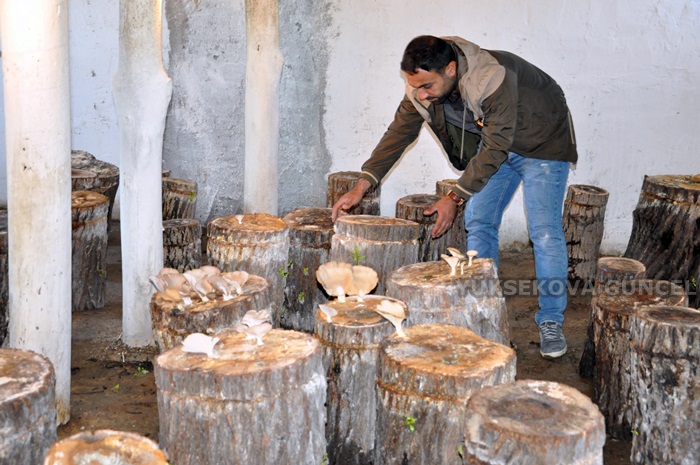 İlçeye 10 kilometre uzaklıkta bulunan Gürdere köyünde (Cıvyan) sera kuran Bilmez, mantarların yetişmesi için gece gündüz emek harcıyor.