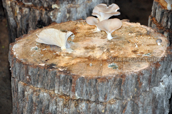 Kütükleri kestik. Mantarların tohumunu, misel dediğimiz tohumu istedik. Bir hafta içerisinde geldi. Bu tohumların 45 günlük mayalanma süreci var. Mayalanma sürecinden sonra sulama işlemi gerçekleştirdik. Havalandırmasını, ışıklandırmasını, nem derecesini, sıcaklık derecesini ölçüyoruz. Onun dışında herhangi bir bakımı yok.
