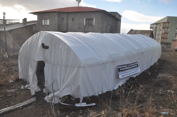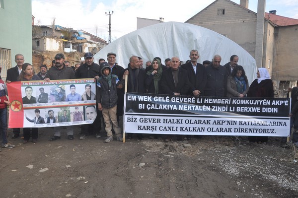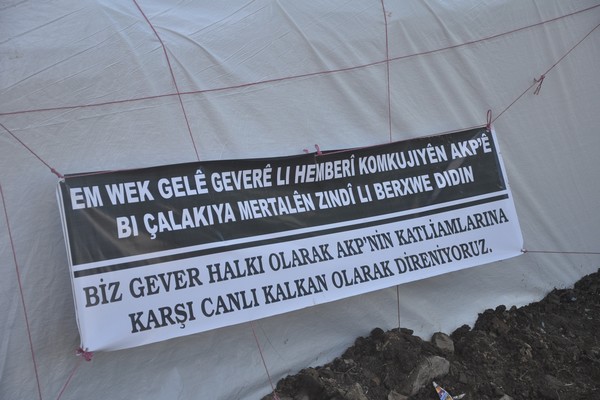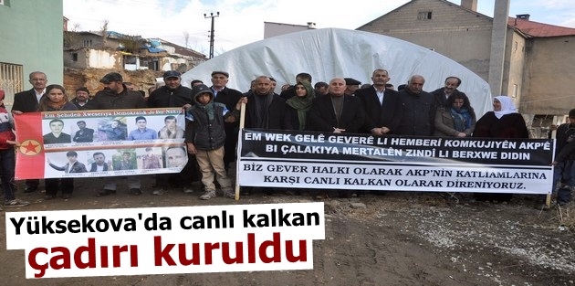 Yüksekova’da Eski Kışla Mahallesi’nde Gever Demokratik Toplum Meclisi bileşenleri tarafından canlı kalkan çadırı açıldı.