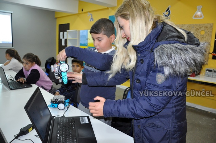 Yüksekova İlçe Milli Eğitim Müdürlüğünün hayata geçirdiği proje kapsamında ‘robotik kodlama sınıfı’na kavuştuklarını ifade eden Bilişim Teknoloji Öğretmeni Sümeyye Aydoğdu, “Yüksekova ilçemize 7 robotik kodlama, 3 Stem atölyesi, 1 ahşap olmak üzere 11 atölye kuruldu. Doğu Anadolu Kalkınma Ajansın (DAKA) katkısıyla okulumuzda robotik kodlama dersleri vermekteyiz. Çok fazla robot materyallerimiz var. Mbot, stratch, 3D Yazıcı, Lego 3 materyallerimiz bulunmaktadır. Robotik kodlama 21. yüzyılda çocuklarımız için gereken bir şey. En çok Mbot robotlarıyla çalışıyoruz. Daha sonra Lego setleri ve Arduino setlerimize geçeceğiz. Burası bir köy okulu, çoğu çocuğun evinde teknolojiye dair çok az şey vardır. Bu robotik kodlama atölyesiyle de onların sahip olmadığı yeterliliklerini kazandırmış oluyoruz. Projeye özellikle kaymakamımız, ilçe milli eğitim müdürümüz, okul müdürümüz başta olmak üzere destek veren herkese teşekkür ederiz” dedi.