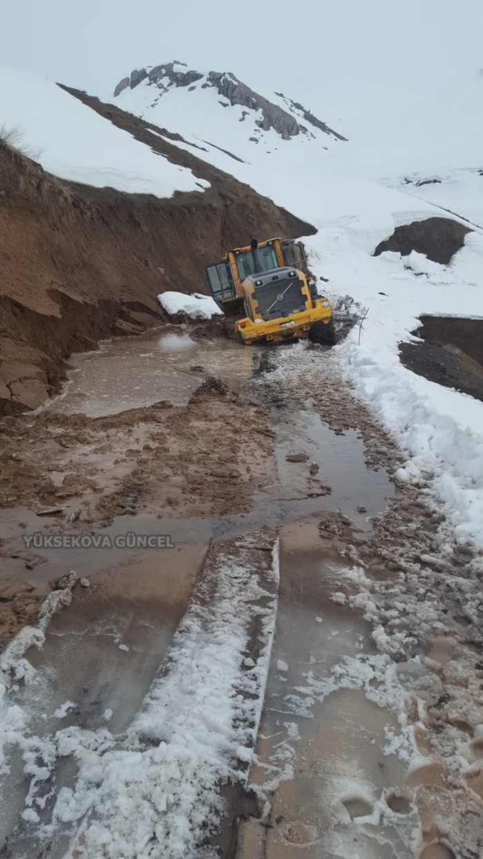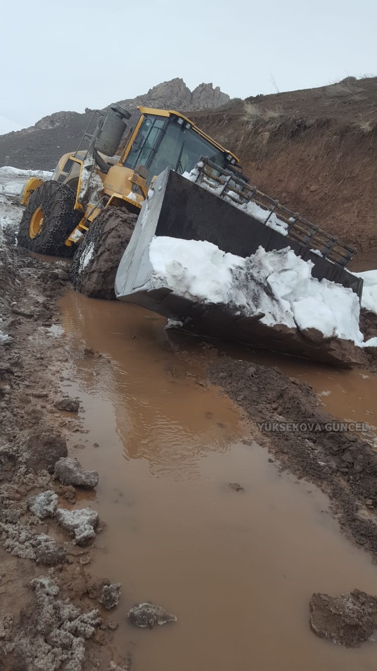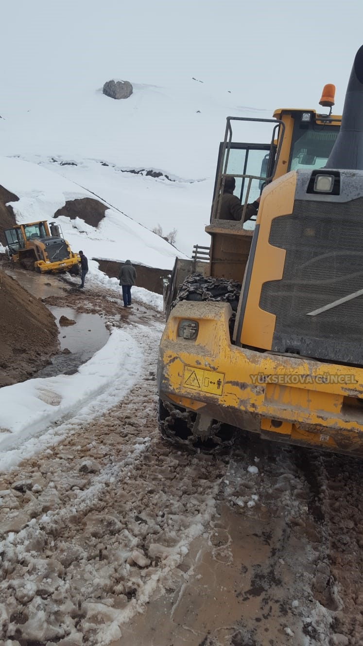 Yüksekova ilçesine bağlı 15 kilometre uzaklıkta bulunan Beşatlı köyün Çakmak mezrasında yoğun yağışlardan dolayı köyün yolun çökme sonucu çalışan kepçe mahsur kaldı.