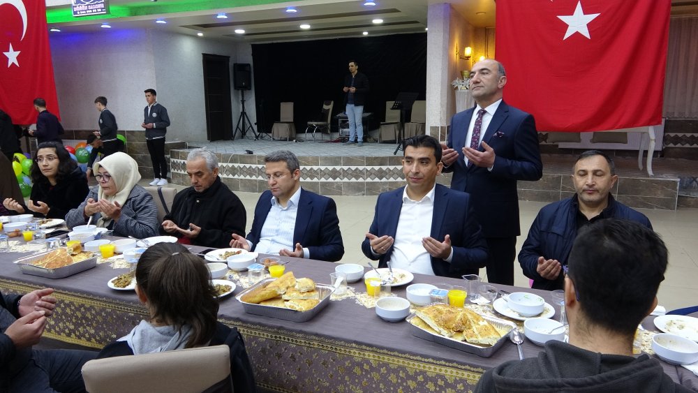 İftar programında konuşan Milli Eğitim Müdürü Atael,”Milli eğitim bakanlığımızca 6 Şubat’ta meydana gelen depremden itibaren eğitim camiası olarak tüm depremzede ailelerimizin yanında olduk, olmaya da devam edeceğiz. Bizde Yüksekova olarak deprem bölgesinde gelenleri bağrımıza bastık. Onların üzerinde tramvayı azaltmak için onlar için faaliyetler yürütüyoruz. Yüksekova’da ikamet eden depremzede ailelerimizle beraber iftar yemeğinde buluştuk. Bu fikir ise zaten Yüksekova Malazgirt Mesleki ve Teknik Anadolu Lisesinin tarafından çıktı. Bizde Yüksekova Kaymakamımız Ömer Çimşit’in liderliğinde böyle bir iftar yemeği düzenledik. Allah bir daha böyle olayları yaşatmasın. Bizde üzerimize düşen tüm görevini yerine getirdik. İftar yemeğimize katılanlara teşekkür ediyoruz’’ dedi.