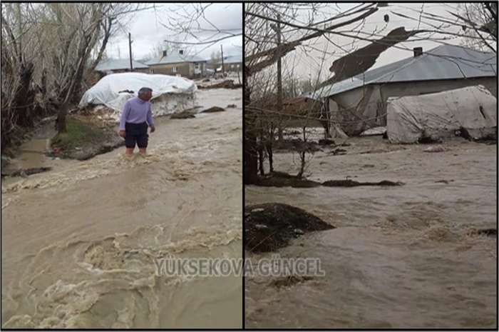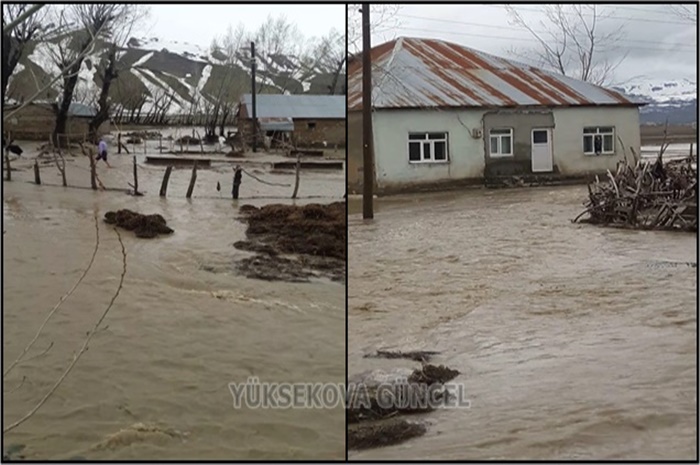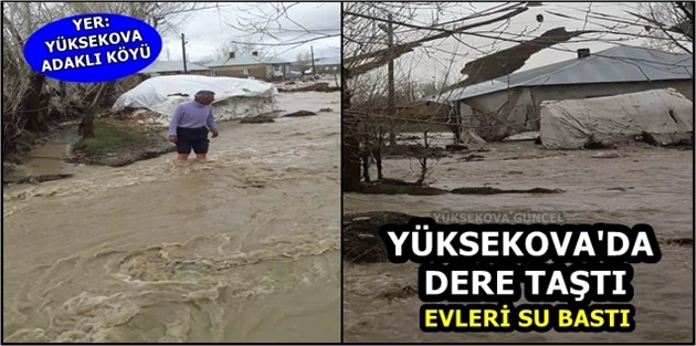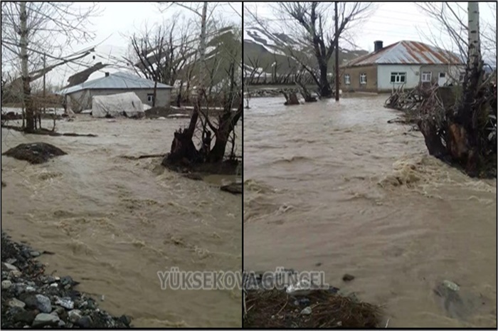 Yüksekova ilçesinde iki gündür etkili olan yağışlar nedeniyle dere taştı, bazı evler sular altında kaldı.