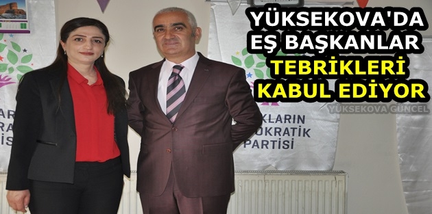 Yüksekova’da oyların yüzde 65,87'sini kazanan eş başkanlar, HDP ilçe binasında tebrikleri kabul etti.