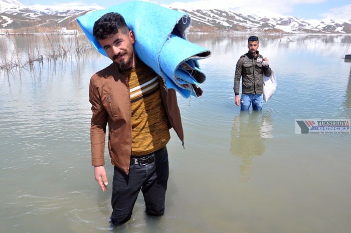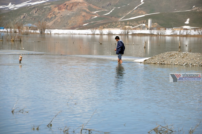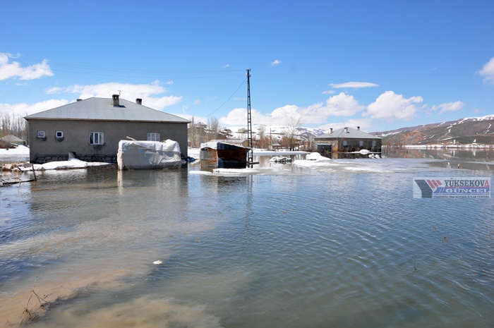 Yüksekova ilçesine bağlı Köprücük köyünde yoğun yağışlar ve kar ermesi sonucu sular altında kalan evler tahliye edildi.
