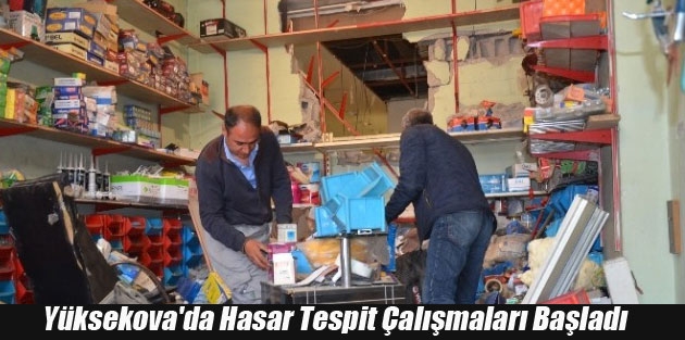 Emniyet Müdürlüğü, Mal Müdürlüğü,Yüksekova Ticaret ve Sanayi Odası ile Esnaf ve Sanatkarlar Odası üyelerinin bulunduğu zarar tespit komisyonu, Cengiz Topel Caddesi üzerinde zarar gören iş yerlerinde hasar tespiti yaptı.
