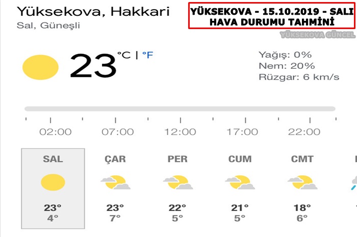 YÜKSEKOVA GÜNCEL - HABER MERKEZİ Yüksekova ilçesinde 15.10.2019 - SALI Günü Hava Durumu Şu Şekilde Olacak.