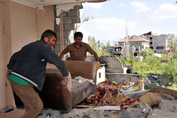 YÜKSEKOVA-Yüksekova İlçesi'nde 13 Mart 2016'da başlayan ve 30 Mayıs'ta sona eren operasyonlar ve sokağa çıkma yasağının ardından ilçeye dönenler bayram hazırlığına başladı. Bir yandan ağır hasarlı evler yıkılırken, bir yandan da vatandaşlar az hasarlı evlerini onararak bayram hazırlığına başladı. Operasyonların yoğun olarak yapıldığı Cumhuriyet, Güngör, Orman ve Eski Kışla mahallelerinde enkaz halindeki evlerde tüm tehlikelere karşı sağlam eşya çıkarmaya çalışan vatandaşlar, yetkililerden kendilerine bir çözüm bulunmasını istiyor.