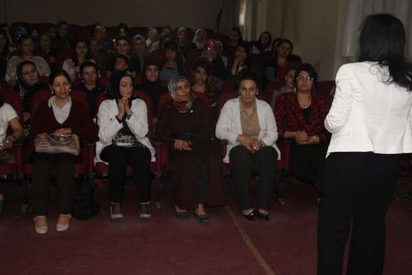 Yüksekova Kaymakamlığı Aile Destek Evi'nde düzenlenen seminere katılan Güzellik Uzmanı Sevgi Sarıcan, seminere katılanları, cilt sağlığı hakkında bilgilendirdi.