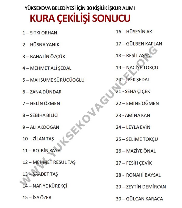 Yapılan kura ile Yüksekova Belediyesine alınacak 30 kişinin isimleri şöyle:.jpg)