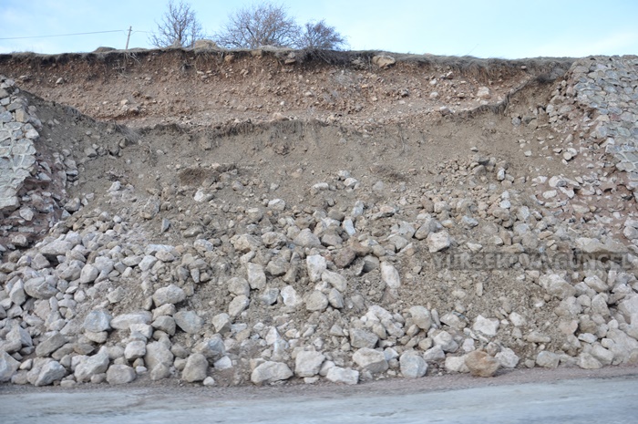 Yüksekova , ilçesine Bağlı Esendere yolu üzerinde boydan boya bulunan istinat duvarı yağışlara dayanmayıp birkaç noktada duvar yola döküldü.