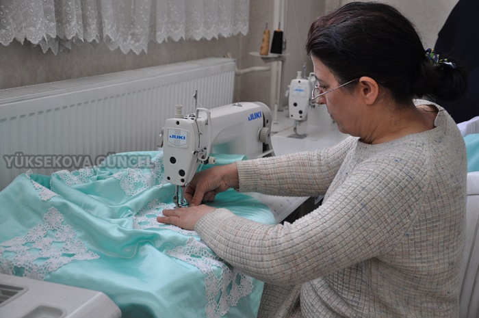 Vesile Yamak isimli kursiyer de, “Ben Devlet Hastanesi’nde doğumhanede çalışıyorum. Nöbet çıkışlarında yada nöbet öncelerinde kursumuza geliyoruz. Hem burada sosyal faaliyet olması maksadıyla hem de bir şeyler üretmek, kendimize çeyiz yapmak üzere kursa geldik. Ben şimdi çıkınca nöbete gidecem. Songül hocamız sağolsun, bize çok şey öğretti. Arkadaşlar ile iyi anlaşıyoruz. Kurs gerçekten faydalı. Yüksekovalı hanımlara çok faydalı, bize de çok faydası oldu. Çalışıyor olmamıza rağmen çok şey yaptık. Gerçekten teşekkür ediyoruz” ifadelerini kullandı.