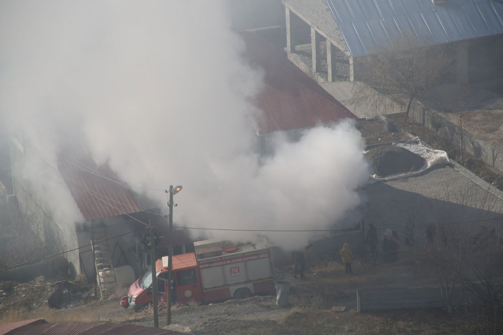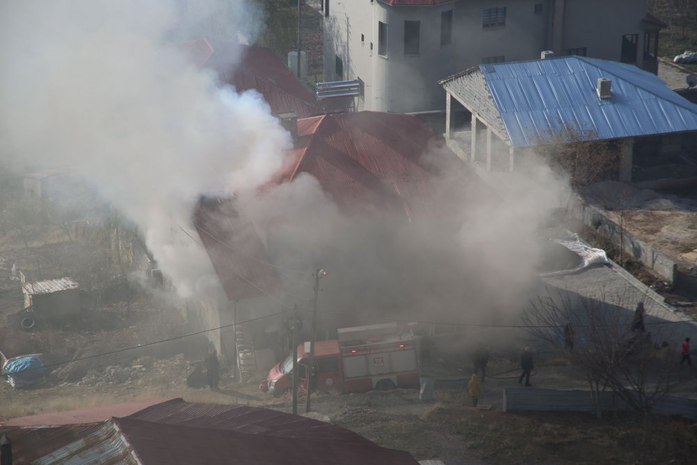 Bilinmeyen bir nedenden dolayı kalorifer kazanında çıkan yangın kısa sürede alev alarak büyüdü.