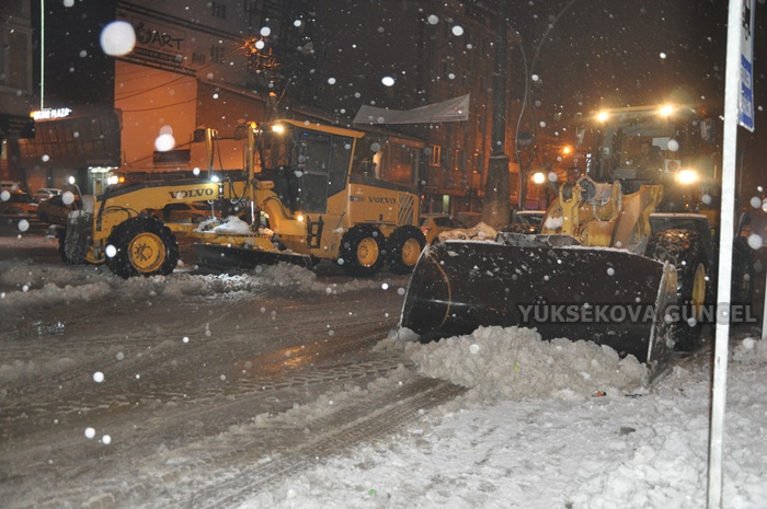 Yüksekova ilçesinde belediye ve karayolları ekipleri kar temizleme çalışmalarını aralıksız sürdürüyor.
