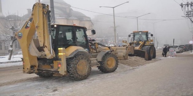 Belediye ekipleri yoğun kar yağışından vatandaşların olumsuz şekilde etkilenmemesi için çalışmalarına ara vermeden devam ediyor.