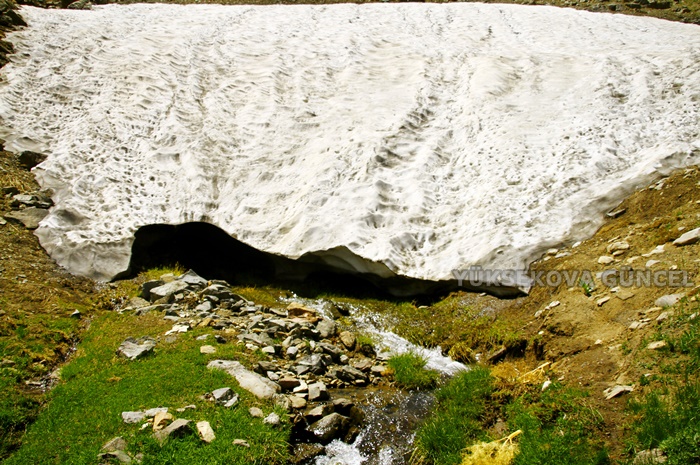 Yüksekova'da görsel sanatlar öğretmeni olarak görev yapan Ümit Bartın, Doski bölgesinde bulunan Mergezer Yaylası'nın yemyeşil görüntüsüyle bütünleşen kar kütlelerini görüntüledi.