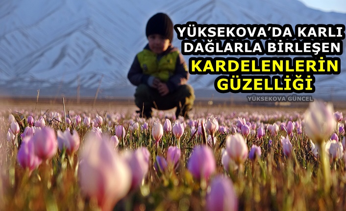 Yüksekova ilçesinde baharın habercisi olan kardelenlerin karlı dağlarla bütünleşmesi görenleri hayran bıraktı.